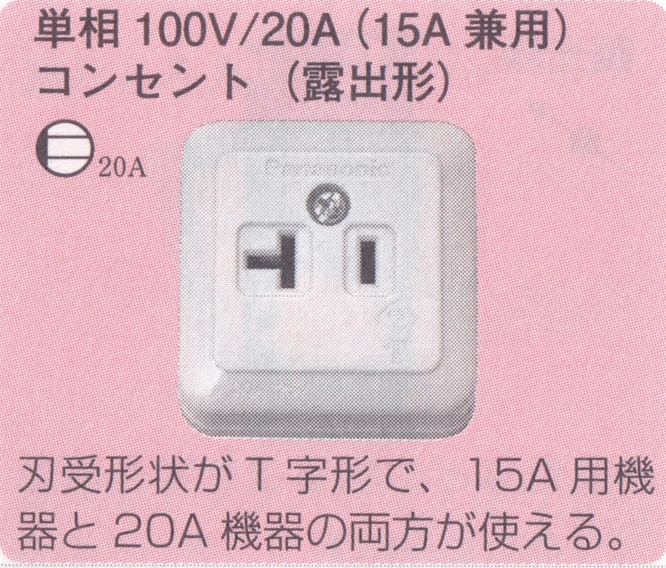 刃受形状がT字形で、15A 用機器と20A機器の面方が使える。