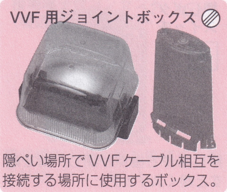隠ぺい場所でVVFケーブル相互を接続する場所に使用するボックス。