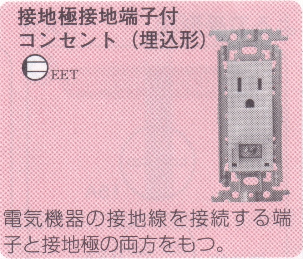 電気機器の接地線を接続する端子と接地極の面方をもつ。