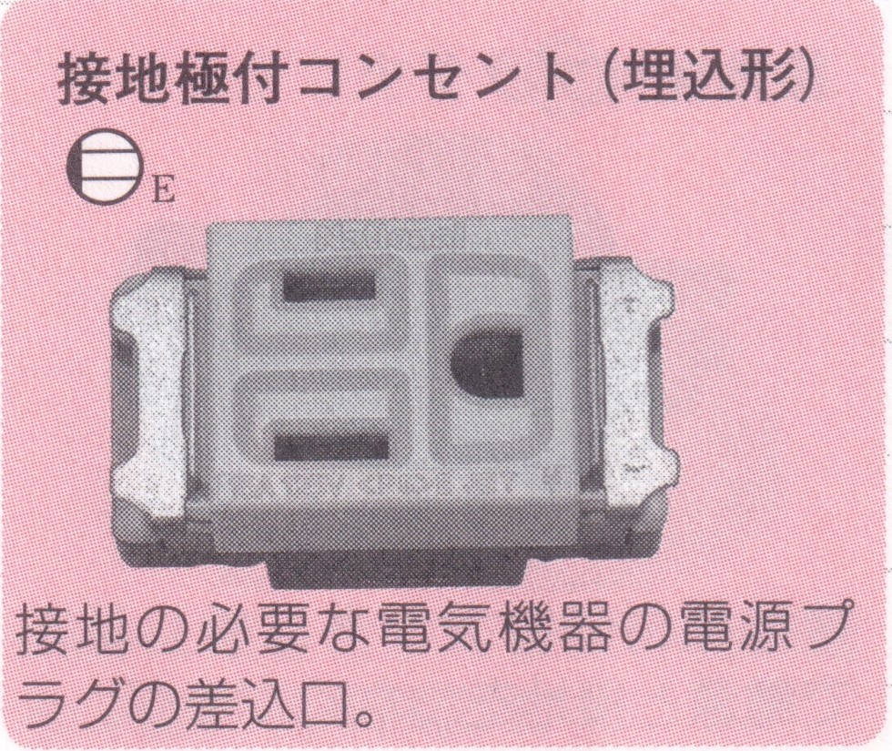 接地極付コンセントに差し込んで電源と接地をつなぐプラグ。