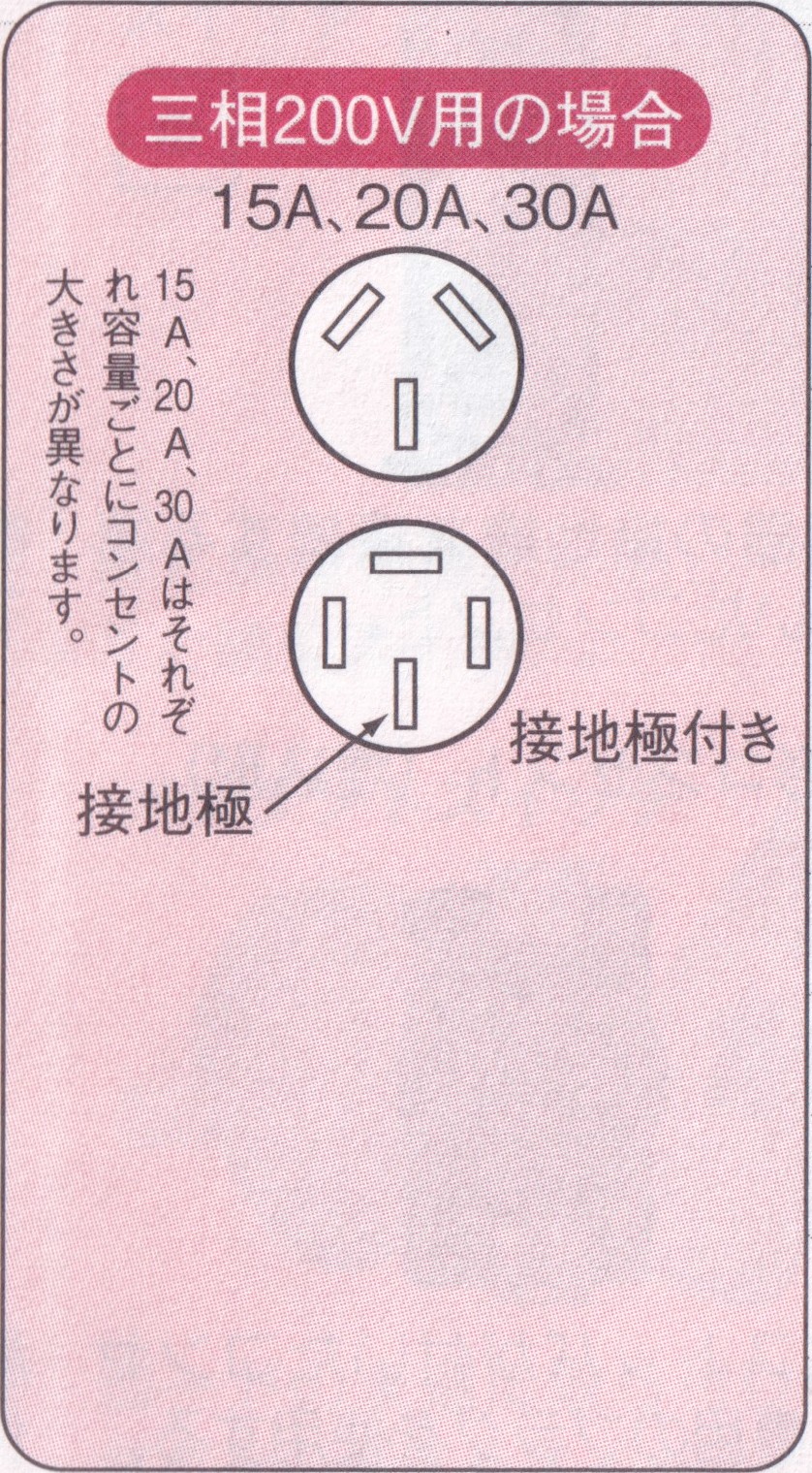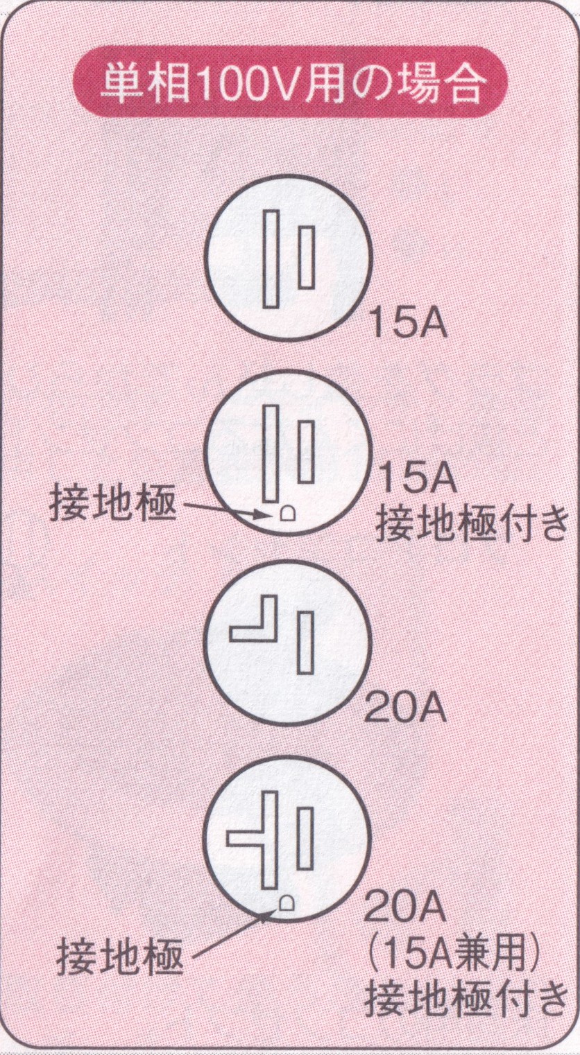 刃受形状がT字形で、15A 用機器と20A機器の面方が使える。